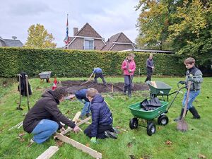 De eerste tuinbakken zijn klaargemaakt en gevuld en werd er volop nagedacht over wat er allemaal verbouwd gaat worden. De kinderen bedachten enthousiast een plan voor het voorjaar: radijsjes, wortels, prei, courgette, tomaten, aardappelen, rode bieten en munt. Van de oogst wordt iets lekkers gekookt of gebakken om te delen met de klassen.